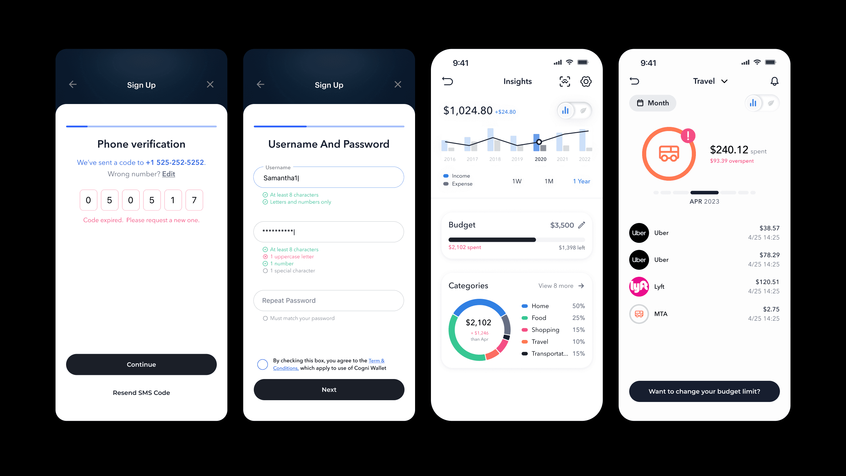Led the redesign of Cogni’s onboarding and budgeting experience, reducing friction and improving completion by simplifying flows, introducing clear spending analytics, and establishing a consistent visual system across charts, categories, and progress indicators to help users better understand and control their finances.